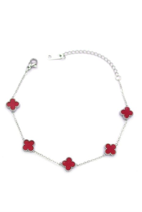 Gümüş VC Yonca Bileklik - Bordo