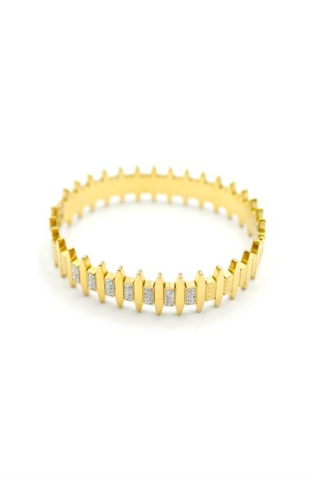 Taşlı Çelik Kelepçe Bilezik - Altın