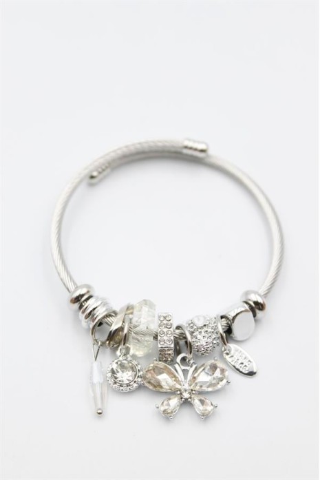 Çelik Charmlı Kelebek Bileklik - Beyaz