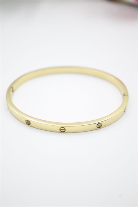 CRT Model İnce Taşlı Çelik Bilezik (60mm) - Altın