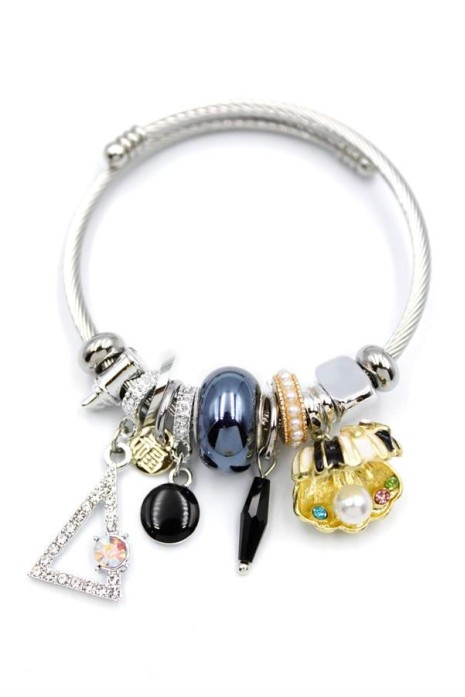 Çelik Charmlı İncili Deniz Kabuğu Bilezik - Siyah