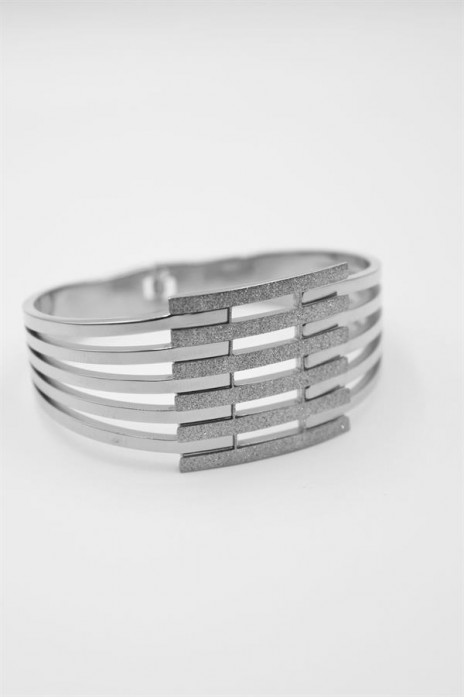 Yaldızlı Kalın Kaburga Bilezik - Gümüş