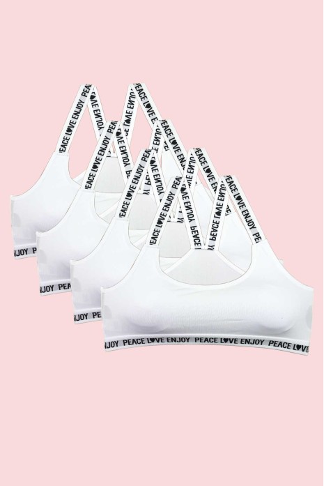4 Adet Çapraz Kalın Askılı Kadın Sporcu Büstiyer Beyaz