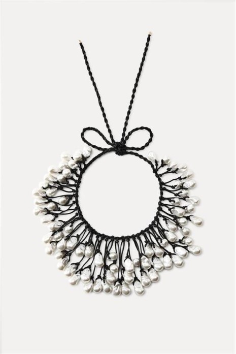 İncili Kordon Kolye - Siyah