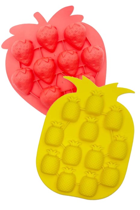 Silikon 3 Boyutlu Buz Kalıbı Çilek ve Ananas Figürlü 2 li Set