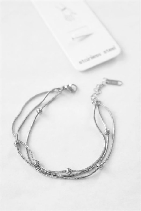 Üç Zincirli Toplu Çelik Bileklik - Gümüş