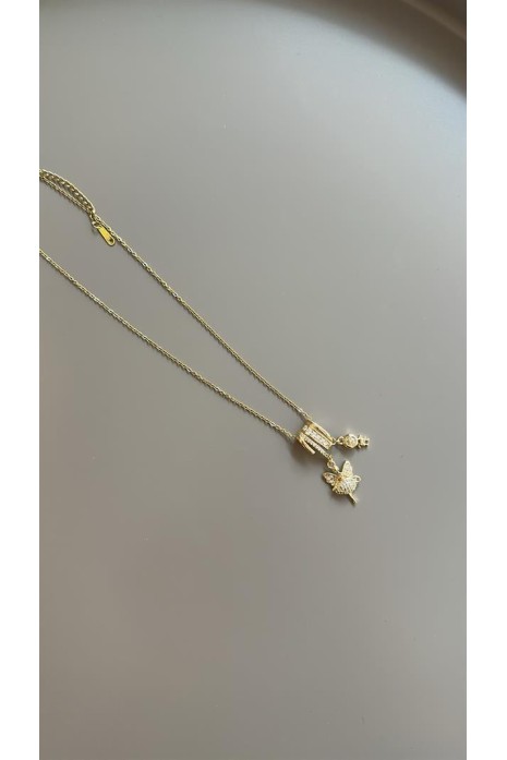 Sallantılı Peri Taşlı Kolye - Altın