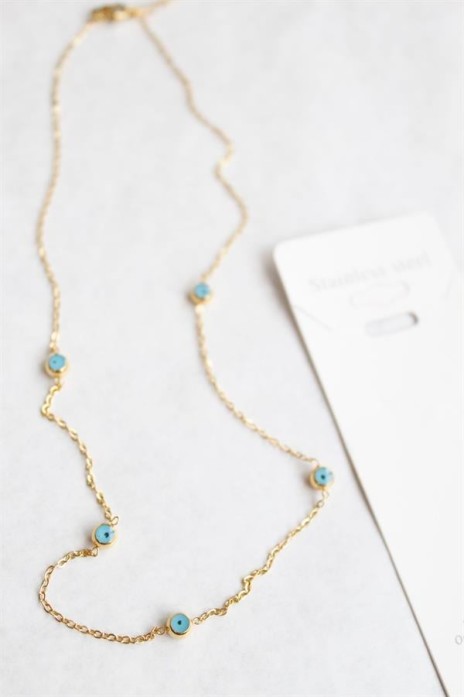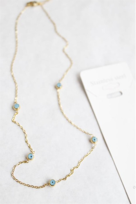 Nazar Boncuk Çelik Kolye - Altın