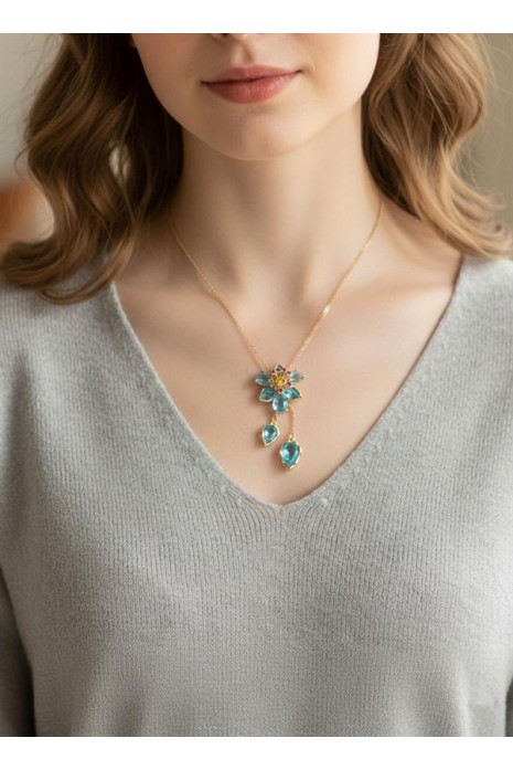 Swr Çiçek Kolye - Turkuaz