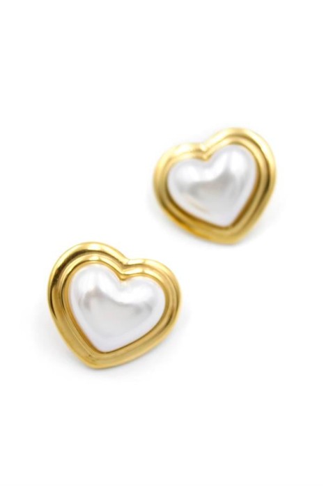 İnci Kalp Küpe - Altın