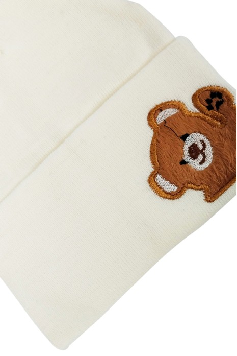 Akrilik Ayıcık Figürlü Çocuk Bere Beyaz