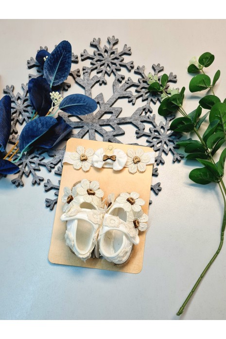 Kız Bebek Hediyelik Patik ve Saç Bandı Yenidoğan Royaleks