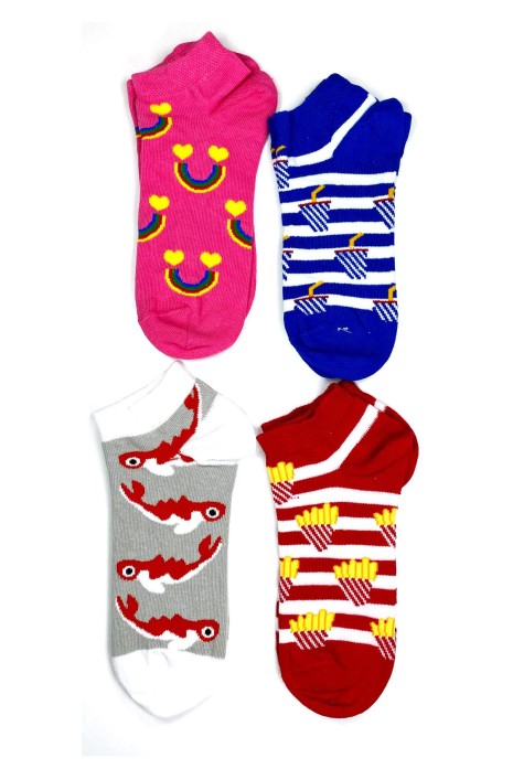 4 Çift Canlı Renk ve Desenli Pamuklu Kadın Bilek Çorap