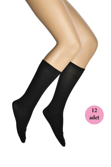 12 Adet Kalın Dizaltı Çorap 70 denye 500 Siyah