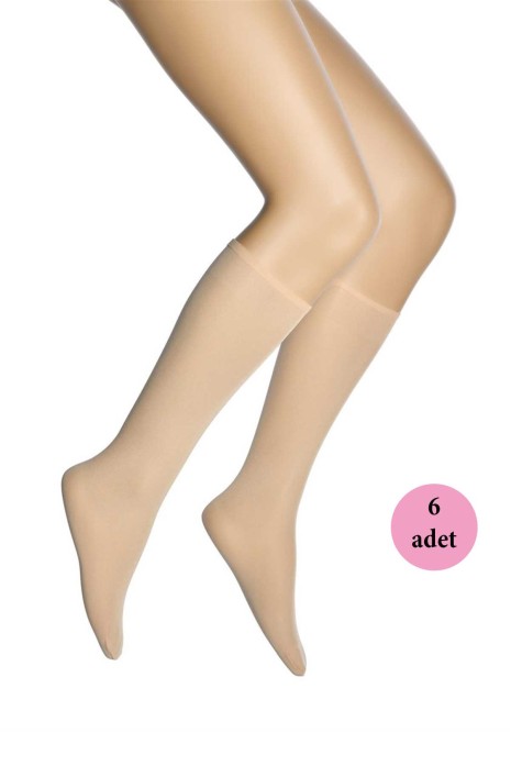 6 Adet Kadın Diz Altı Parlak Fit 15 Denye Çorap Ten