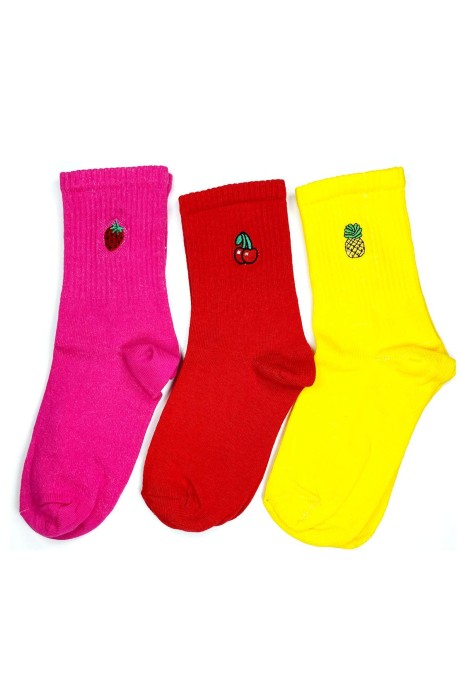 3 Çift Meyve Nakış Baskılı Yumuşak Pamuklu Kadın Soket Kolej Çorabı