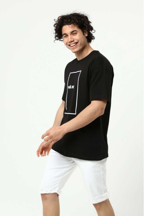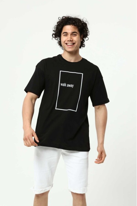 Walk Away Siyah Erkek Bisiklet Yaka Oversize T-Shirt Çift Taraf Baskılı