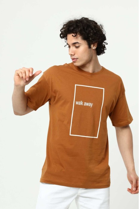 Walk Away Kahve Erkek Bisiklet Yaka Oversize T-Shirt Çift Taraf Baskılı