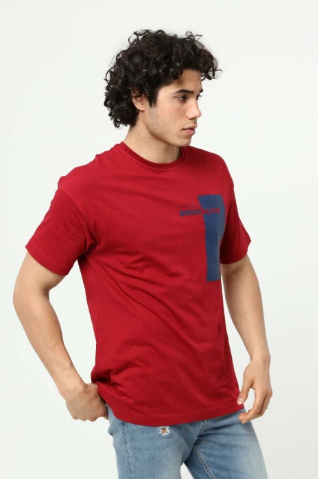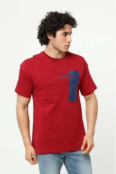 Brooklyn Bordo Erkek Bisiklet Yaka Oversize Kısa Kollu Baskılı T-Shirt