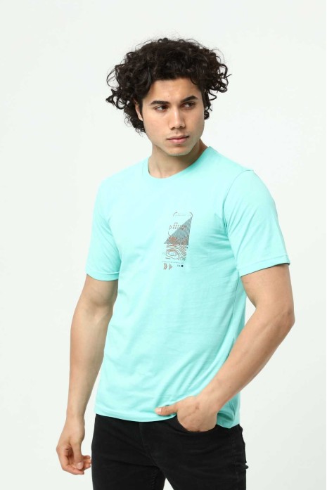 Su Yeşili Erkek Baskılı Oversize T-Shirt