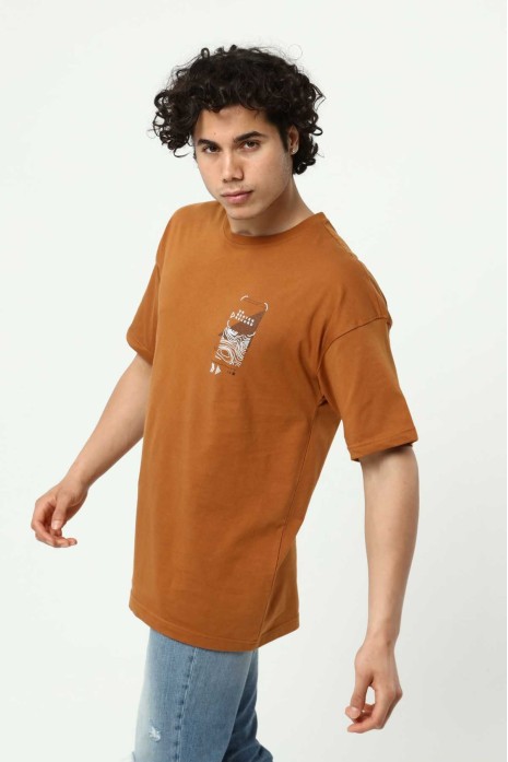 Kahve Erkek Baskılı Oversize T-Shirt