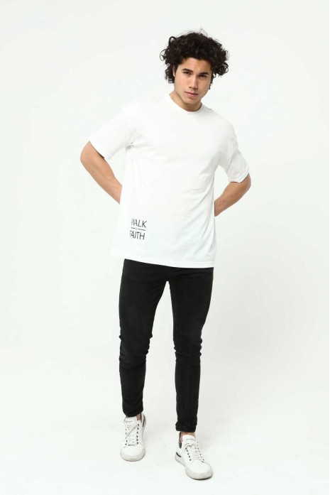 Walk By Faith Baskılı Beyaz Erkek Oversize T-Shirt