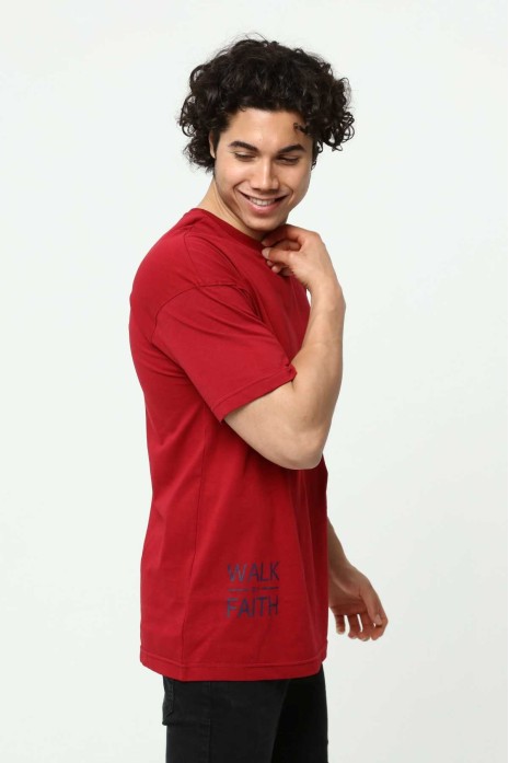 Walk By Faith Baskılı Bordo Erkek Oversize T-Shirt