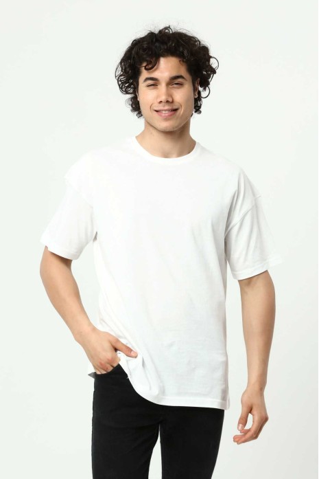 Beyaz Erkek Basic Oversize Bisiklet Yaka Kısa Kollu T-Shirt
