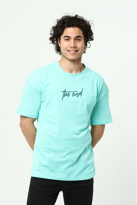 Su Yeşili The End Nakış 3 Boyut Baskılı Erkek Oversize T-Shirt