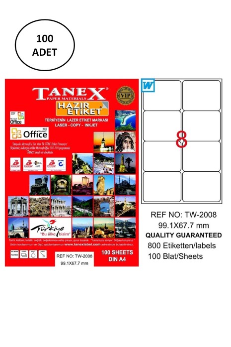Tanex Tw-2008 Lazer Etiket 99X67 Mm 100 Adet