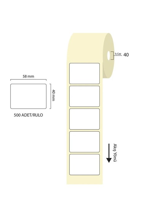 Tanex 58x40mm Eco Termal Etiket 1 Li 40mm 500 Adet