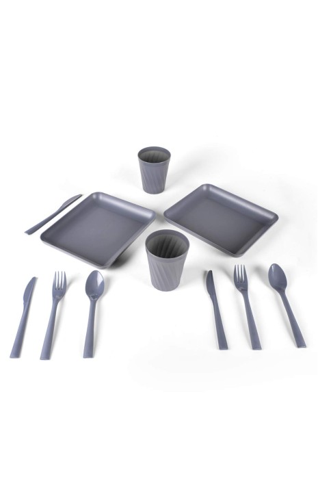 11 Parça Piknik Seti Piknik Tabak Çatal Kaşık Bıçak Bardak Ve Saklama Çantası Koyu Gri Rengi