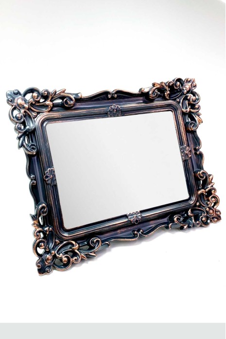 Dekoratif Eskitme İşlemeli Ayaklı Şık Ayna 29x22 cm Siyah