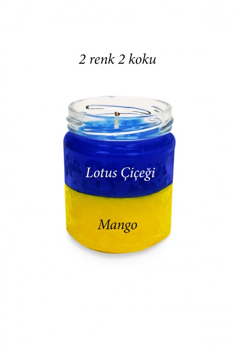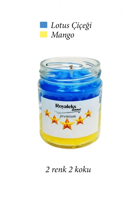 Premium Seri 2 Renk 2 Koku Sarı Lacivert Beş Yıldız Kavanoz Mum 210 cc - RYL