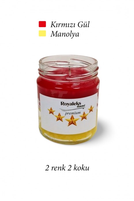 Premium Seri 2 Renk 2 Koku Sarı Kırmızı Beş Yıldız Kavanoz Mum 210 cc - RYL