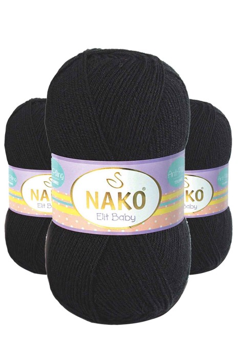 3 Adet Elite Baby El Örgü İpi Tüylenmeyen Bebek Yünü Siyah 217