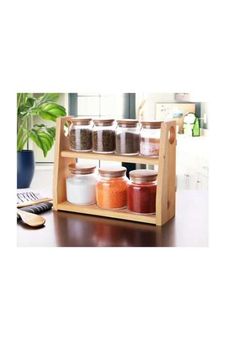 Bambu Kapaklı 7 Parça Cam Baharat Takımı Royaleks-G2747