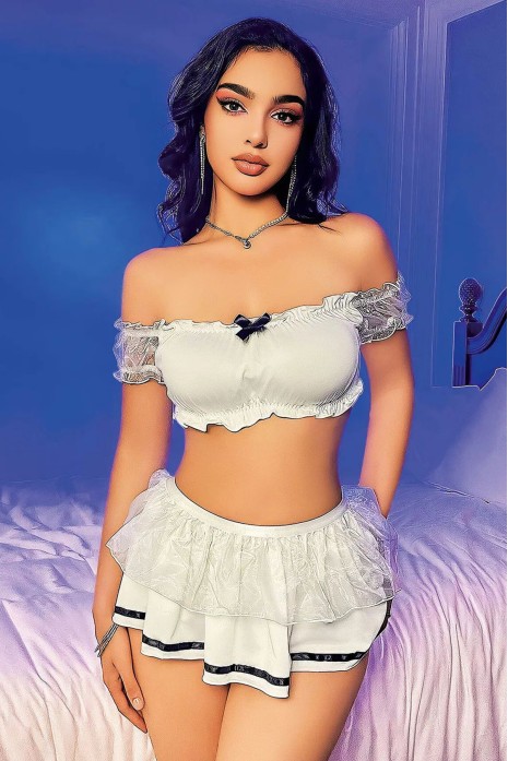 Night Light Kadın Beyaz Fantezi Etekli Denizci Kostümü 3673