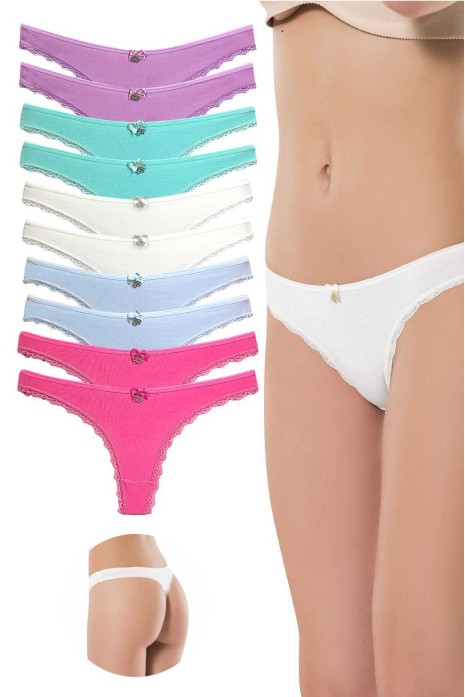 10 Adet Pamuklu Kadın Klasik Dantelli String Tanga
