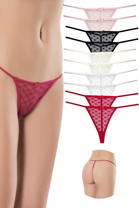 10 Adet Önü Dantelli Kadın İp Tanga String İpkini