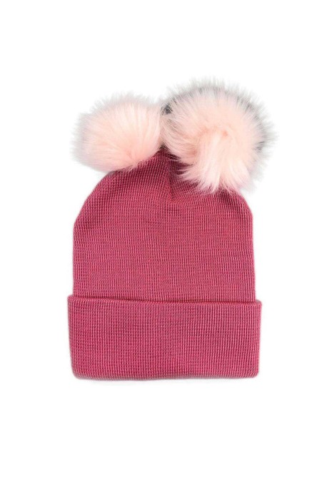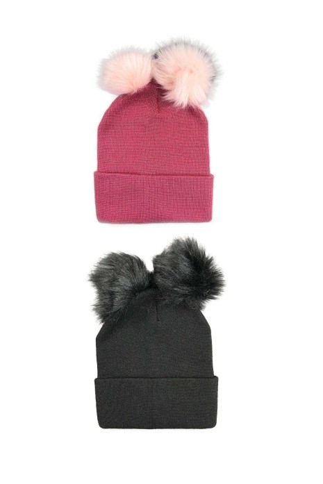 2 Adet Çift Ponponlu Bere Pembe Siyah