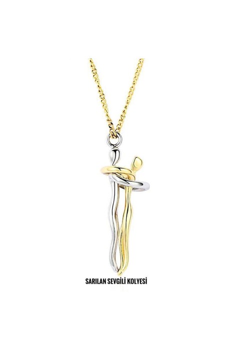 Sarılan Sevgililer Uçlu Çift Renk İnce Zincirli Tasarım Kolye