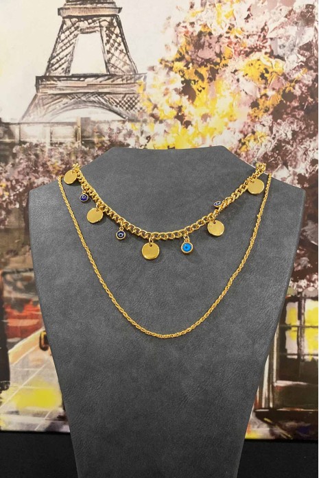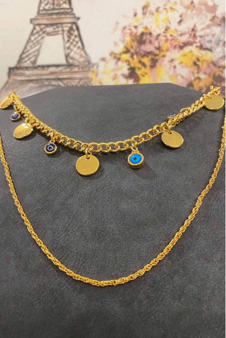 Nazar Boncuklu Birleşik Zincir Set Kolye 40-50 cm