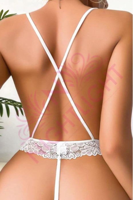 Night Light Kadın Beyaz Dantelli Göğüs Dekolteli Fantazi Body 7006