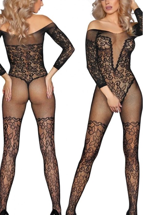 Night Light Kadın Siyah Straplez Fantezi Özel Bölgesi Açık File Vücut Çorabı 5052