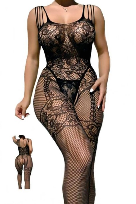 Night Light Kadın Siyah Fileli Jartiyer Görünümlü Fantezi Vücut Çorabı 5071