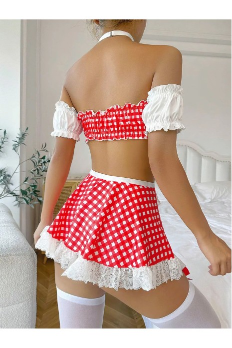 Night Light Kadın Kırmızı Kravatlı Fantazi Öğrenci Kostümü 1052