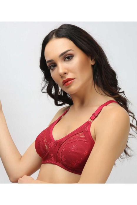 Toparlayıcı Lez Ara Dantel Sütyen Bordo