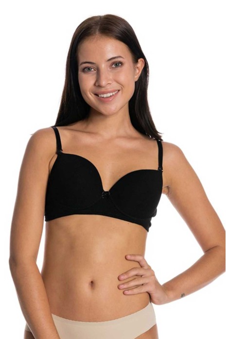 Destekli Slikonlu Düz Sütyen Siyah