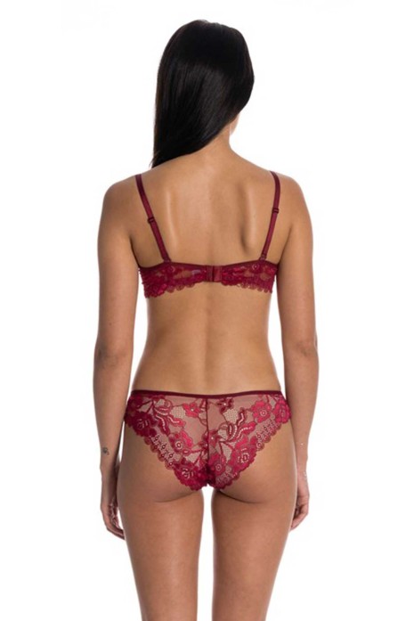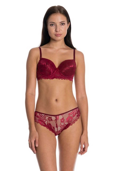 Dolgulu Full Dantelli Sütyen Takımı Bordo